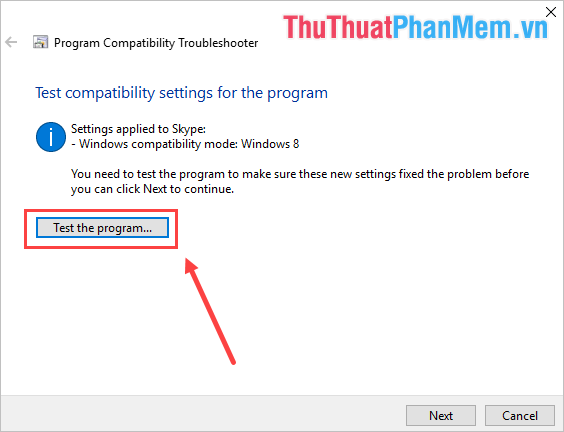 Step 4: The software will automatically find the best settings for your application. Then, select Test the program… to run the application again for testing.