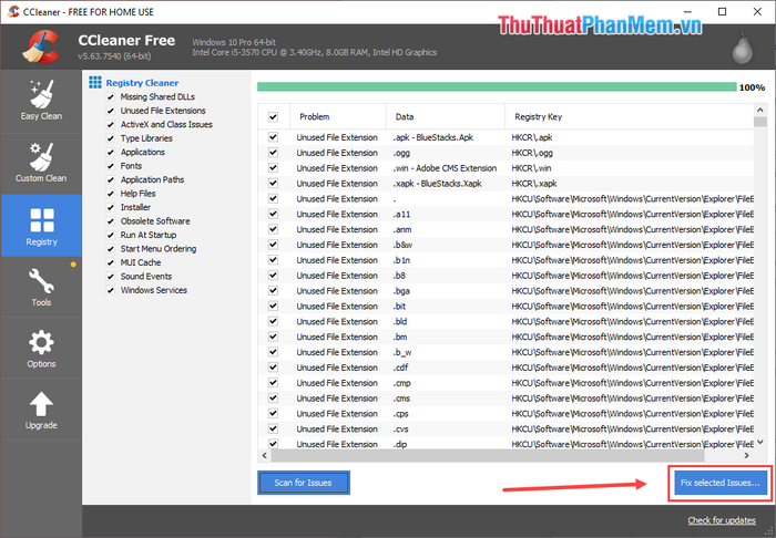 Step 3: After scanning is complete, choose Fix selected Issues to repair the errors.