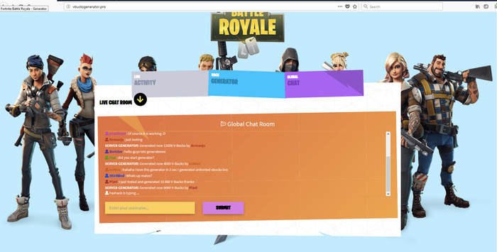 Những trang web này thường khuyến khích khách truy cập nhấp vào quảng cáo để mở khóa V-cash, nhưng điều đó không bao giờ xuất hiện. Một số trong số chúng triển khai những thủ thuật khôn ngoan để không chỉ trông hợp lệ mà còn hoạt động, với những tin nhắn giả mạo từ các fan Fortnite xuất hiện trên màn hình hoặc các phần bình luận giả mạo đầy khách hàng hài lòng.