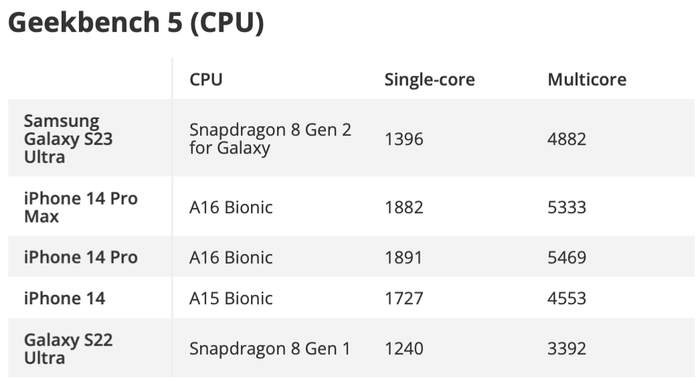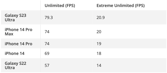 Kết quả benchmark ban đầu cho dòng S23 này thật sự ấn tượng so với S22 và các đối thủ cạnh tranh. Đặc biệt, hiệu năng đồ họa của S23 được đánh giá cao hơn nhiều so với S22, đặc biệt là phiên bản sử dụng Exynos. Trong bài test 3DMark Wild Life Extreme, S23 Ultra đạt 3874 điểm, vượt xa S22 Ultra năm trước với chỉ 1912 điểm. Dễ hiểu thôi vì Snapdragon 8 Gen 2 có nhân đồ họa mạnh mẽ hơn và được ép xung.