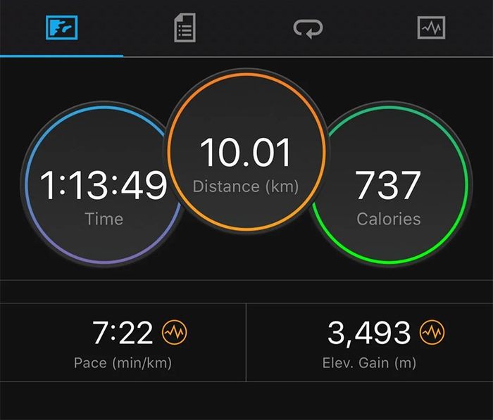 Ứng dụng cung cấp thông tin chi tiết về lượng calo tiêu thụ, tốc độ tập luyện và thời gian hoạt động. Bạn có thể lướt ngón tay để xem biểu đồ và tùy chọn ẩn các chỉ số không cần thiết.