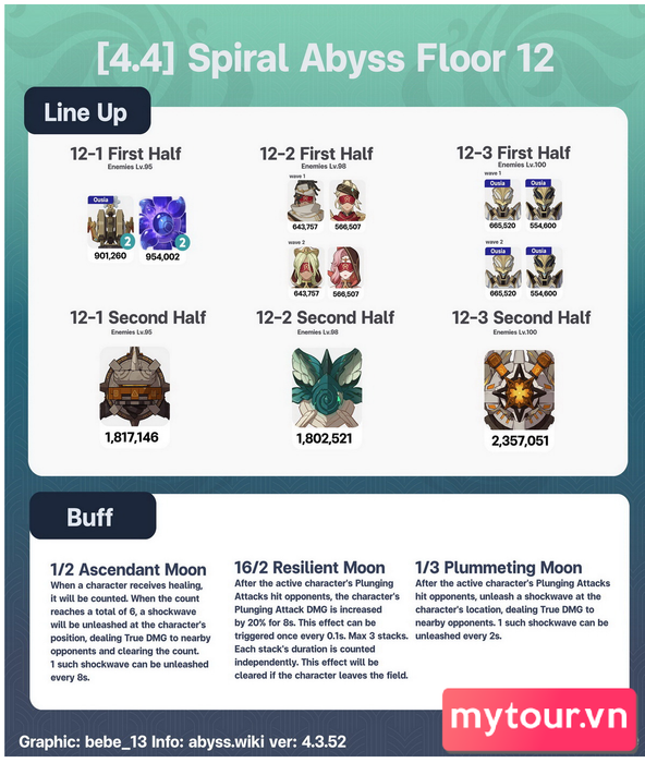 Nếu bạn vẫn đang gặp khó khăn ở tầng 12 trong patch Genshin Impact 4.4, Mytour tin rằng thông tin trên sẽ hữu ích cho bạn. Đợt quái hiện tại dường như dễ dàng hơn không ít so với trước đó, đặc biệt là vì Setekh Wenut không xuất hiện ở tầng 12-3 nên ít gây khó khăn hơn. Chúc bạn thành công và nếu cần hỗ trợ thêm, hãy tham gia server Discord của Mytour để thảo luận cùng mọi người!