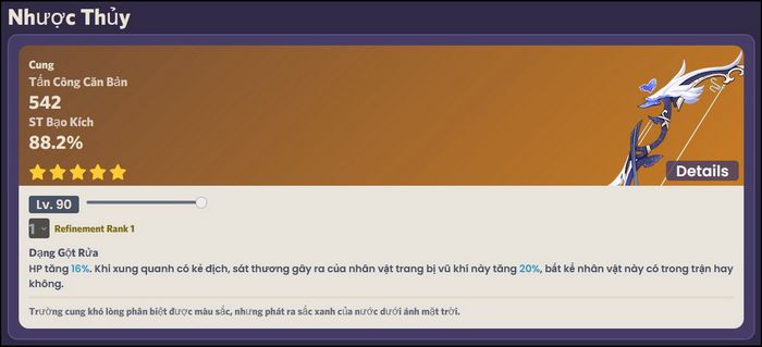 Meanwhile, for other bow-wielding DPS characters, Aquatic Weakness is a decent alternative. Despite its slightly low attack stat, the 20% damage increase when near enemies and the 88.2% CRIT Rate are extremely valuable. Ganyu, Childe, Yoimiya will all appreciate this weapon.