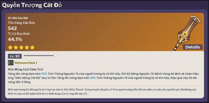 This could be considered the best 5-star weapon for DPS currently, although some recent unique characters like Neuvillette, Wriothesley cannot fully utilize its effects. Characters wielding it will enjoy high attack stats, a large CRIT Rate amount, and useful elemental damage increase effects.