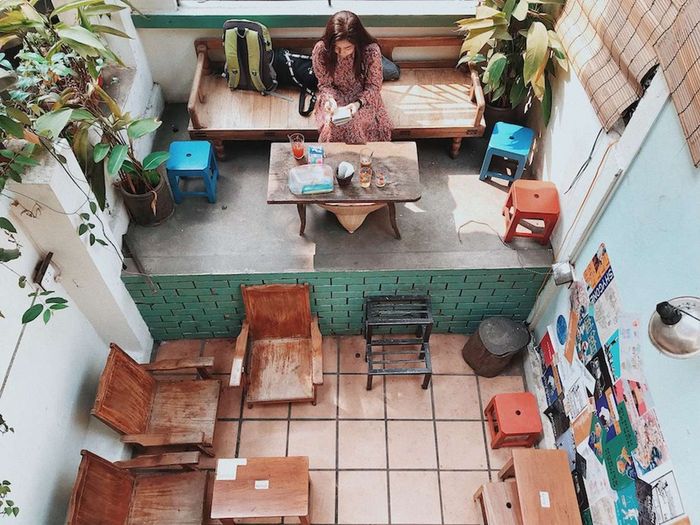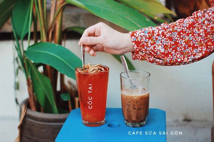 Khu vực check-in hot nhất là sân thượng tầng 2. Thực đơn của quán có những thức uống độc đáo như cốc tai, chanh xí muội, sâm bổ lượng,... là những đồ uống đặc trưng chỉ có ở đây. Hôm đó, chúng tôi quyết định thử cà phê sữa Sài Gòn, hương vị đậm đà, cảm giác loãng và ngọt, hương vị cafe nhẹ nhàng, đá nhỏ giọt. Còn cốc tai với hương vị mùa hè, thêm dứa và sơ ri, thơm ngon và màu sắc tươi tắn. Giá cả thì rất hợp lý so với các quán cafe khác ở Hanoi.