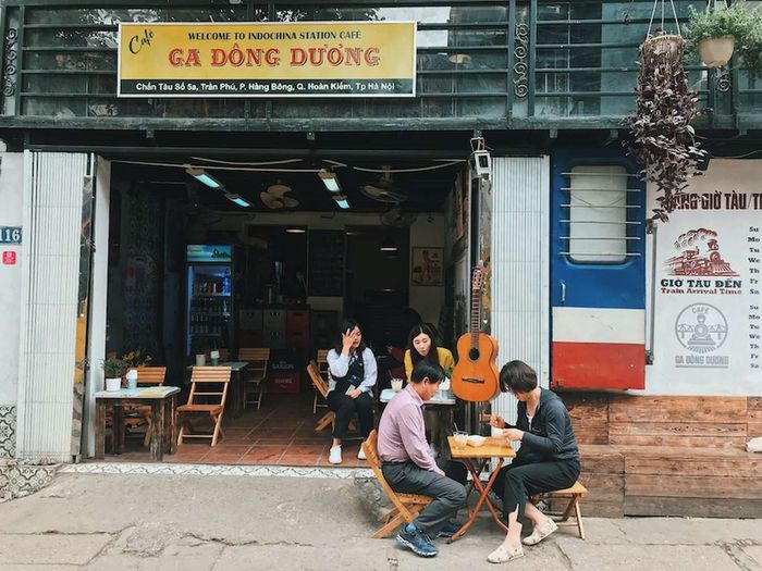 Không nơi nào khác có thể trải nghiệm việc nhìn tàu đi qua như chiếc xe chở kí ức và thưởng thức ly cà phê như tại Hà Nội. Trong dãy quán cafe ven đường tàu Phùng Hưng, Cafe ga Đông Dương là địa điểm được ưa chuộng nhất. Lẽ ra có thể là bởi decor độc đáo nhất của quán. Với hai tầng, không gian không quá rộng, quán được thiết kế theo hình ảnh một chiếc toa tàu. Đồ uống phong phú, giá cả phải chăng. Ngoài ra, quán còn cung cấp bánh mì kẹp thơm ngon (bánh mì Woa).