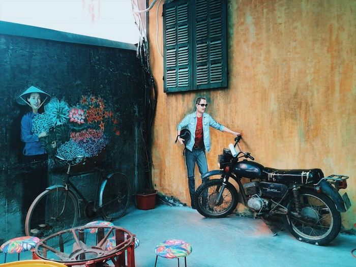 Chiếc xe cub cổ kính như một bức tranh sống động