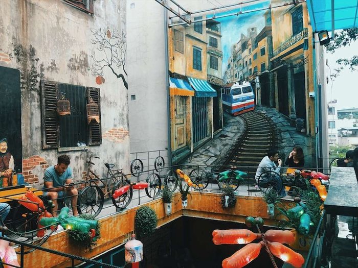 Dọc theo con đường ray vốn trở nên cằn cỗi, nhưng du khách lại bị cuốn hút bởi những quán cà phê đậm chất cổ kính của Hà Nội thời kỳ kháng chiến. Những ngôi nhà dân giản dị đã biến thành những quán cafe sáng tạo, không chỉ làm phong phú thêm cuộc sống mà còn làm nổi bật khu vực của mình trong trung tâm thủ đô Hà Nội.