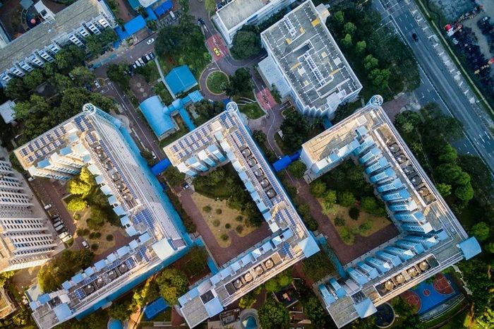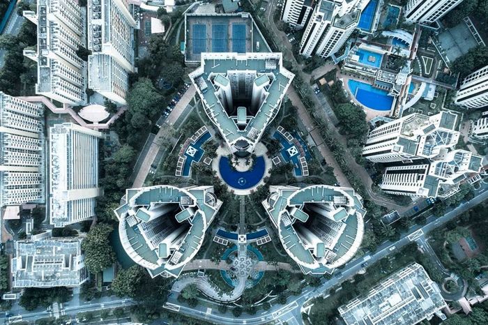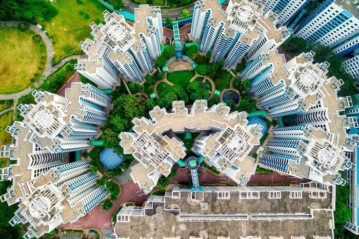 Kiến trúc của các toà nhà hiện lên gọn gàng và lịch lãm qua ống kính từ độ cao.
