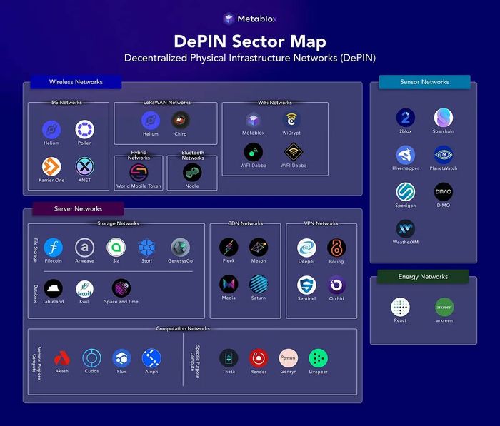 Bản đồ sector DePIN (Nguồn: Metablox)DePIN được phân chia thành 4 loại: