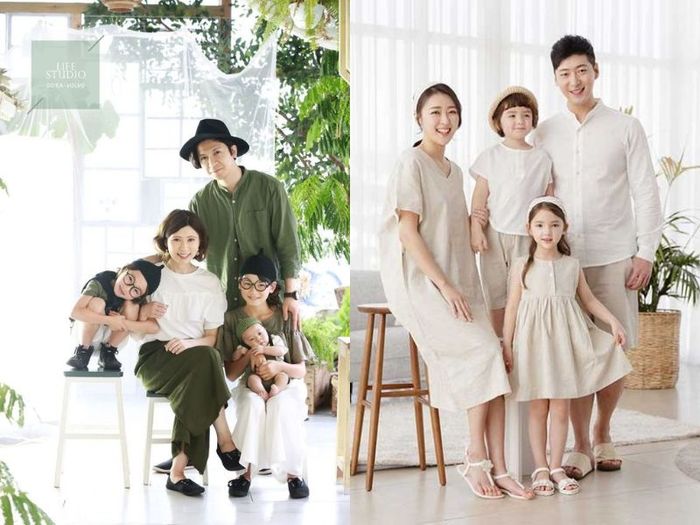 - Cả gia đình nên mặc đồ cùng gam màu và tone màu, tạo sự hài hòa
