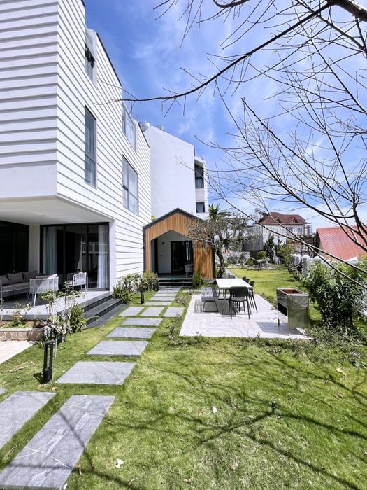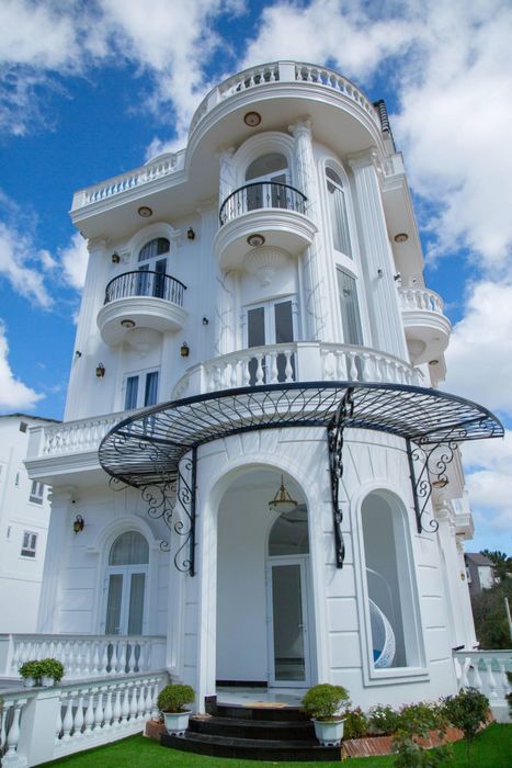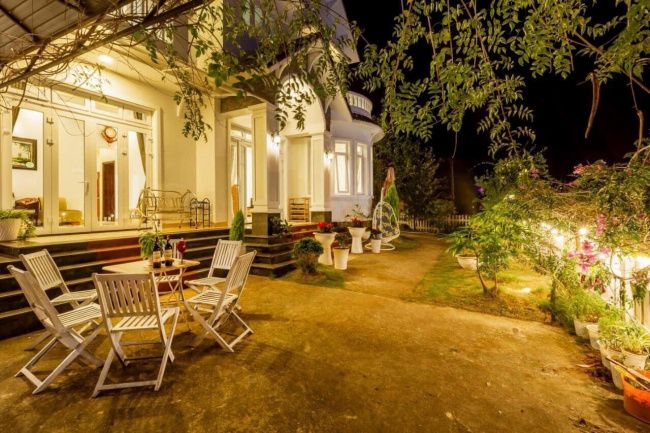 Diện tích 250m2, 4 phòng ngủ king size, Vòng Tâm Viên chứa đến 12 người. Phong cách kiến trúc Châu Âu hiện đại, rộng lớn. Có bãi đậu xe oto trong sân. Sân đủ rộng để tổ chức tiệc BBQ với gia đình và người thân. Bên trong, hệ thống đèn vàng tạo cảm giác ấm áp. Địa chỉ: Đường Lâm Viên, Phường 8, TP Đà Lạt