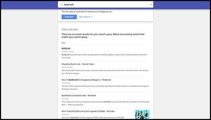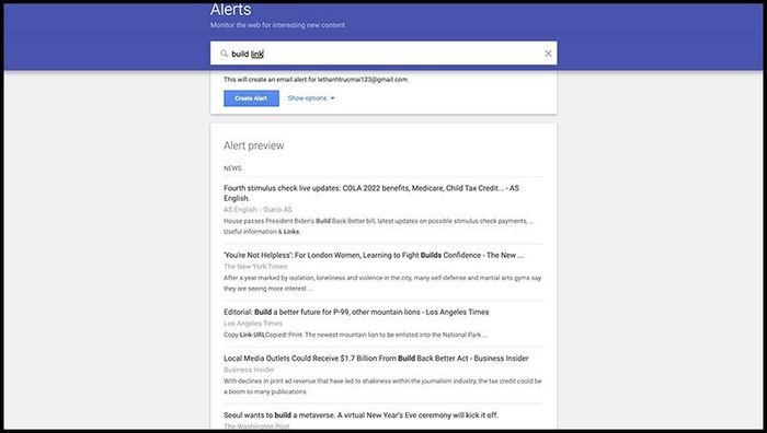 Ví dụ: Nếu bạn tìm kiếm xây dựng liên kết, Google Alert sẽ đưa ra kết quả chính xác hơn: