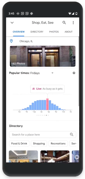The feature extends Google Map’s current business ratings. Credit: GoogleTiếp theo là một tab Danh bạ mở rộng cho các sân bay, trung tâm mua sắm và trạm transit trên khắp thế giới.
