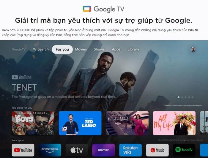 Hệ điều hành Google TV trên TCL 65P635 cung cấp giao diện thân thiện với tiếng Việt và tính năng cá nhân hóa, giúp người dùng dễ dàng truy cập các chương trình yêu thích và xem lại chúng một cách nhanh chóng.