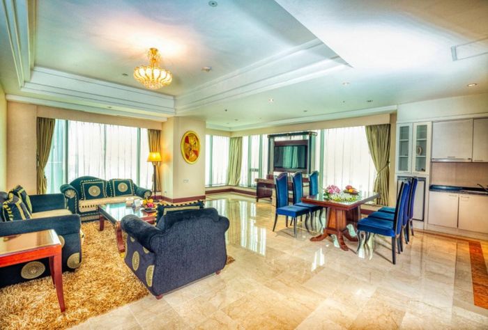 Căn phòng rộng 460m2, là phòng lớn nhất tại khách sạn, phản ánh sự quý tộc và đẳng cấp. Dành cho các lãnh đạo cấp cao, phù hợp cho các sự kiện lớn và quan trọng.