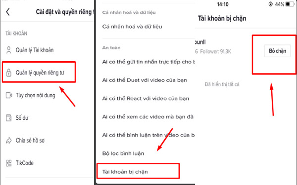 Bạn cũng có thể kiểm tra danh sách tài khoản đã bị chặn trong phần Quản lý Quyền riêng tư.