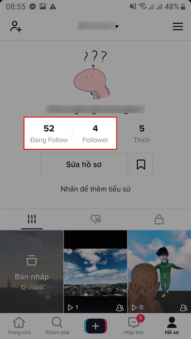 - Bước 1: Mở ứng dụng TikTok và chọn Hộp thư ở góc dưới của điện thoại.