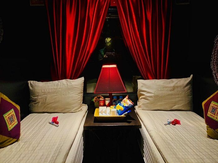 – Inter Valentine Double Bed Bus: 22 individually designed cabins with luxurious amenities such as movie screens, music players, headphones, USB charging ports, and a special complimentary snack. Only one daily departure from Hanoi at 22:30 and one return trip from Sapa at 13:30. Ticket price starts from 680,000 VND/person.