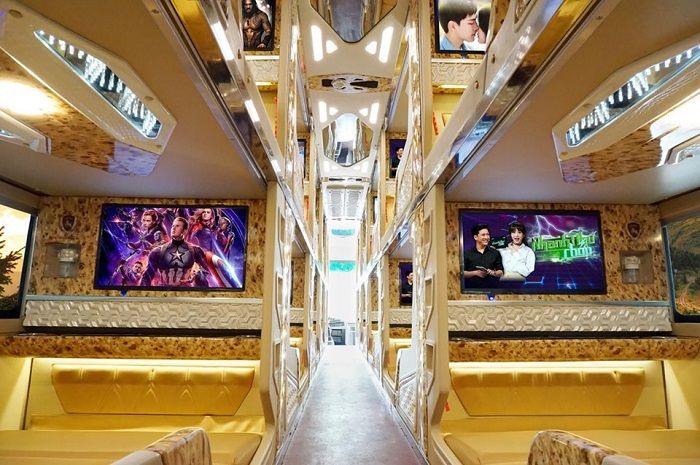 + VIP 20-seater Cabin Sleeper Bus: 20 ultra-VIP private single beds with wide windows for scenic enjoyment. Each bed is equipped with an entertainment TV screen, lights, storage box, charging ports, providing the utmost comfort.