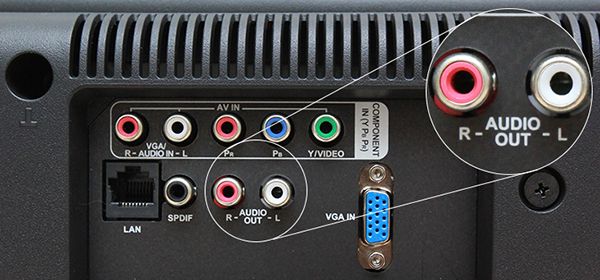 When using the red-white audio jacks, ensure you plug into the jacks labeled AUDIO OUT R-L. Using the wrong pair labeled AV IN will prevent sound from being transmitted to your speakers.