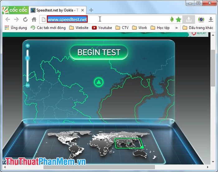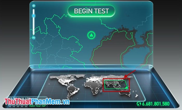 Speedtest automatically picks a geographically close location for testing your network speed. You can also manually adjust the location by moving the green frame below the mini-map.