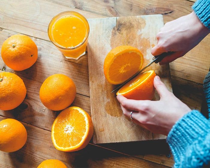Điều 1: Bắt đầu bằng việc chuẩn bị cam và cắt chúng đôi theo chiều ngang để đạt được lượng nước tối đa.