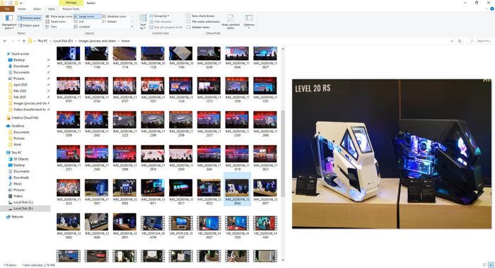 Để mở Panorama Xem, bạn vào tab View và nhấp vào tính năng này. Mình thường dùng Panorama Xem để xem trước hình ảnh mà không cần phải mở chúng bằng phần mềm. Chế độ này rất hữu ích khi bạn có nhiều hình ảnh và video và muốn lọc để xóa. Để sử dụng chế độ này hiệu quả, hãy mở File Explorer toàn màn hình và kéo thanh cuộn sang trái để dành không gian cho Panorama Xem.