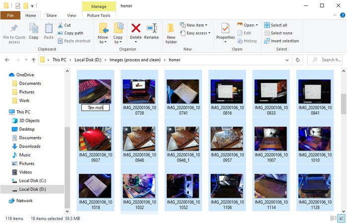 Để thay đổi tên nhiều file hoặc thư mục trong File Explorer, bạn chỉ cần chọn các file/thư mục cần đổi và sửa tên của file/thư mục đầu tiên. Các file/thư mục sau sẽ tự động được đánh số dạng (1), (2), (3), (4), (5)…