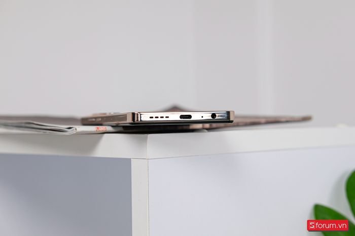 At the bottom, there's a speaker strip, USB Type-C charging port, microphone, and a 3.5mm audio jack.
