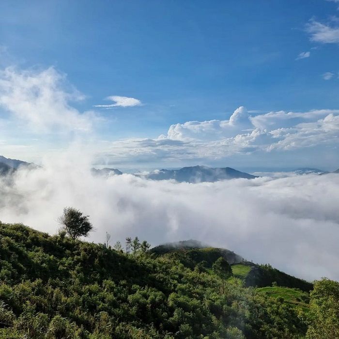 Săn mây tại xã Háng Đồng Sơn La là trải nghiệm thú vị không thể bỏ qua. Bạn sẽ bắt gặp biển mây trải rộng, mây trắng dày và bồng bềnh, như những đám bọt xà phòng ôm lấy đỉnh núi, những đồi trước mặt. Mây ở đây đẹp đến mức khi mặt trời đã lên nhưng vẫn còn đọng lại dày đặc, giúp du khách dễ dàng bắt lấy những bức ảnh lãng mạn.