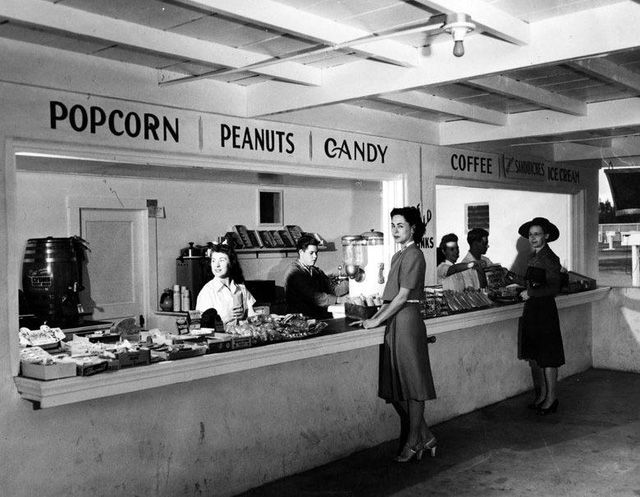 Vào năm 1927, phim có âm thanh đã ra đời, và bất kể già trẻ, giàu nghèo đều có thể thưởng thức phim mà không cần biết đọc chữ hay hiểu nội dung. Tận dụng cơ hội này, hàng loạt quán bán bỏng ngô đã xuất hiện trước các rạp chiếu phim để phục vụ tầng lớp lao động hoặc trung lưu muốn xem phim.