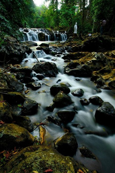 Toàn bộ không gian được phủ bởi màn sương mỏng như bức tranh, dòng thác hùng vĩ như đưa bạn vào thiên đàng huyền bí. Dưới ánh nắng chiều, tia nắng chiếu xuống làm nổi bật màu sắc tươi tắn. Nhẹ nhàng chạm vào dòng nước mát lạnh, bạn như đón thêm năng lượng vô hình. Hành trình vất vả để đến đây sẽ là trải nghiệm không hối hận.