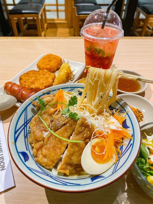 Dive into a world of flavors with Marukame Udon's extensive menu, featuring everything from Tonkotsu chicken soup Udon to spicy seafood and special curry beef Udon. With dishes freshly prepared from on-site noodle machines, prices range from 27,000 to 130,000 VND. Perfect for family meals or outings with friends and colleagues, visit Marukame Udon at its various locations across Hanoi. Contact: 0908 535 066, or visit online at https://www.marukameudon.vn/ and their Facebook page https://www.facebook.com/MarukameUdonVN/. Open daily from 09.00 - 21.30.