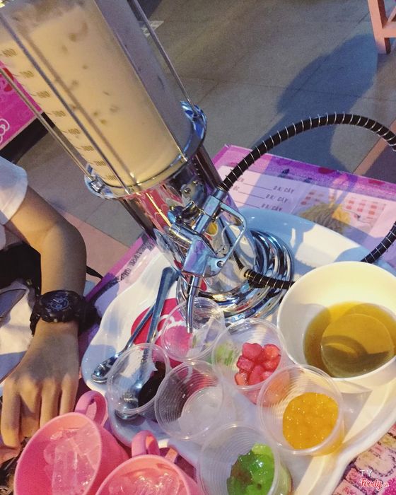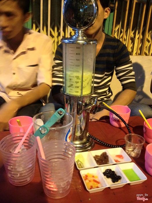 Giá cho một phần trà sữa độc đáo này là 79K với đầy đủ topping, đủ cho 3 đến 4 người thưởng thức. Khi uống hết trà phía dưới, trà xanh trong chai sẽ tự đổ xuống, tạo ra cảm giác thú vị. Khi phục vụ, quán sẽ tạo ra khói mát lạnh, rất phù hợp để giải nhiệt trong thời tiết 37 độ ở Sài Gòn.