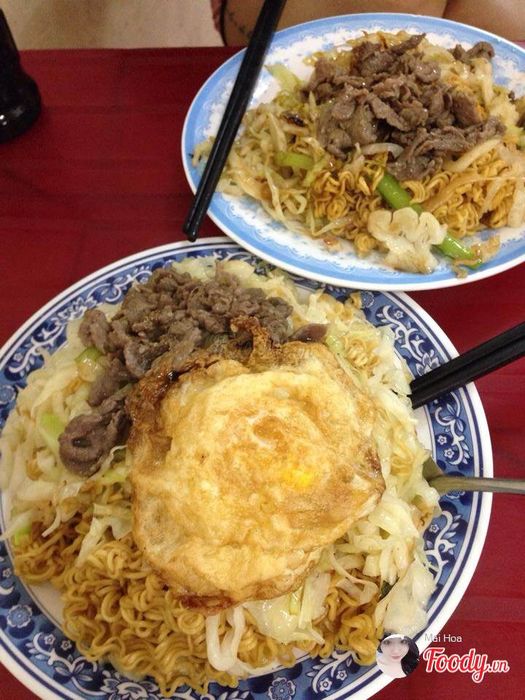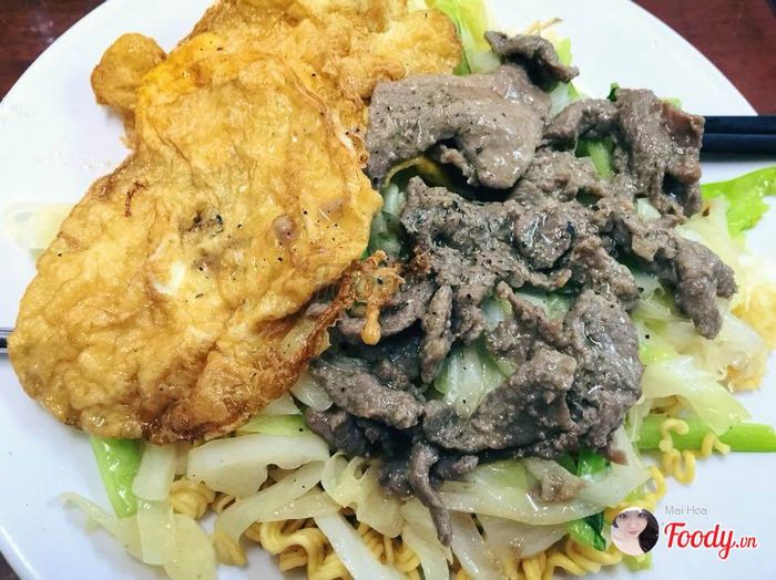 Nơi đây được gọi là 'mì phủ mền', món bò xào trứng trên mì khiến mì trở nên ngon đậm đà, rẻ mà ngon nên được giới trẻ yêu thích rất nhiều.