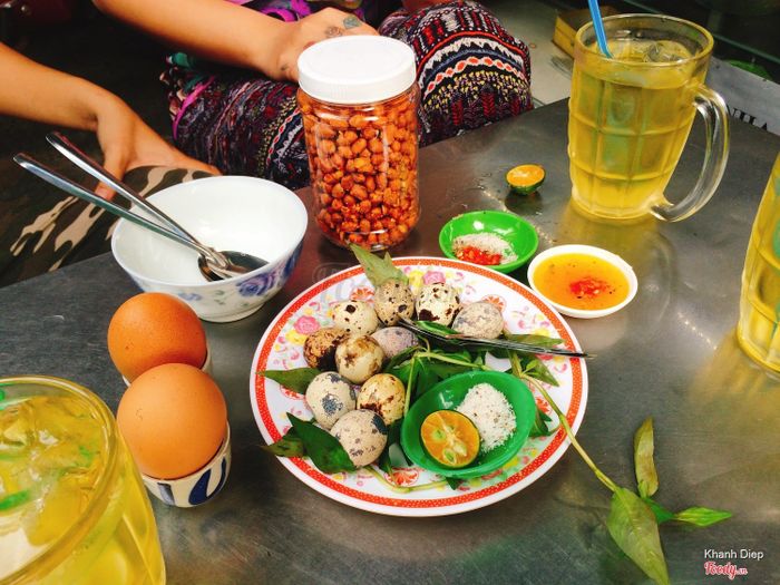 Quán ăn vặt nhỏ nhưng có nhiều món ngon và lạ, đặc biệt là món vịt lộn bọc khoai môn mới lạ mà chúng tôi vừa phát hiện. Vịt lộn được bọc bởi lớp khoai môn thơm béo bên ngoài rất hấp dẫn, kèm theo nước mắm kẹo đặc biệt của quán, thì thực sự là không thể cưỡng lại được. Một quả trứng có giá 14k, ngoài ra còn có cút lộn bọc khoai môn với giá 20k/5 quả.