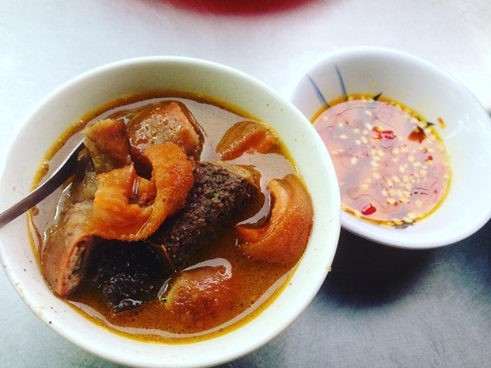 Vị trí địa lý của khu vực nằm ngay khu chợ, nên dễ hiểu là bạn sẽ tìm thấy đủ loại đồ ăn từ đầu đường đến cuối đường khi đến đây. Nếu bạn muốn thưởng thức đồ ăn vặt, có thể thử phá lấu, gỏi khô bò, bánh flan, chè v..v.. Còn nếu muốn no bụng, có thể thưởng thức mì ốc hến, cơm gà xối mỡ, bột chiên v..v..