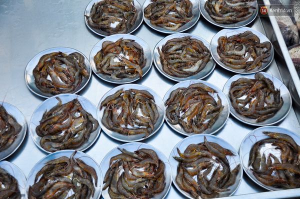Nhìn vào những đĩa tôm tươi đó.Với nhiều năm làm ăn tại các chợ hoa quả lớn nhỏ, cô Hai Tính chia sẻ thêm, có lẽ đây là khu chợ thực phẩm duy nhất không cần đến chiếc cân, vì mọi mặt hàng từ rau củ quả đến tôm, cá, mực, thậm chí bánh kẹo, trứng, thịt cũng được đóng gói sẵn trong đĩa, rổ.