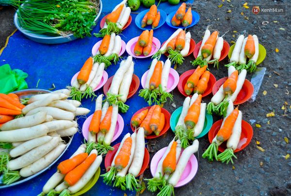 Cà rốt và củ cải trắng được chia thành đĩa đồng giá 5.000 đồng.