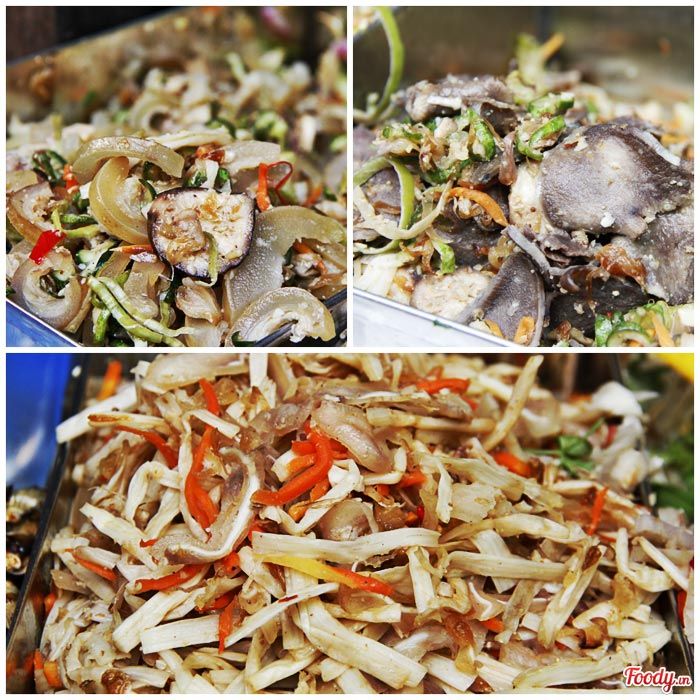 Nếu bạn yêu thích ăn dạng gỏi với rau, thì không thể bỏ qua gỏi ngó sen tai heo, da bê bóp thấu, lưỡi bê bóp thấu… được ướp vị vừa phải với mắm mặn. Khi trộn đều, ngó sen chua chua, tai heo, da bê sật sật, bóp nhanh miếng bánh tráng giòn giòn, chấm thêm chút nước mắm cay làm tăng thêm hương vị hấp dẫn, khó cưỡng lại được.