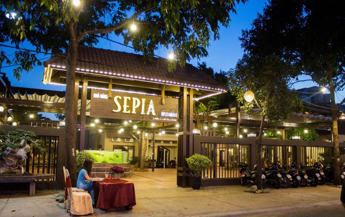 Sepia sẽ khiến bạn choáng ngợp bở khuôn viên sân vườn rộng lớn nơi đây. Đặc biệt, hải sản tươi sống ở đây có mức giá cực mềm so với thị trường. Hải sản đa dạng từ các loại cá chép giòn, cá đuối, cá mú, đến các loại tôm hùm, tôm tích, cua gạch, ghẹ sống... Món ăn tất cả đều được chế biến đa dạng, ngon miệng. Không gian sân vườn của quán rất thích hợp cho tiệc tùng họp nhóm, tổ chức sinh nhật.