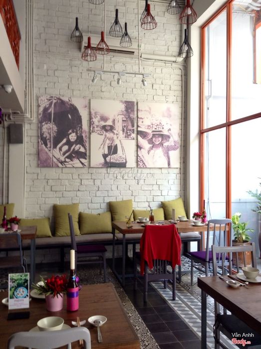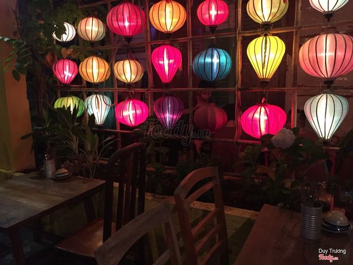Không gian cực kỳ vintage và đặc biệt, quán treo nhiều lồng đèn bên ngoài giống như ở Hội An, nhân viên ở đây mặc áo bà ba và mang dép tổ ong tạo cảm giác lạ lạ. Ba mẹ tôi nói khi ăn ở đây như đang du lịch ngay tại Sài Gòn vậy.