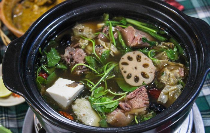 Phố Nướng Tư Trì - Bình QuớiNhà Hàng Tư Trì đặc biệt nổi tiếng về các món dê như lẩu dê, nhũ dê nướng. Thịt dê ướp đều gia vị, nướng trên bếp thơm phưng phức, chấm chao, ăn kèm với đậu bắp giòn giòn. Nước lẩu đậm đà, vừa miệng. Ngoài ra còn có cơm cháy kho quẹt, gà chiên nước mắm, dồi trường chiên giòn xứng đáng để thử qua.