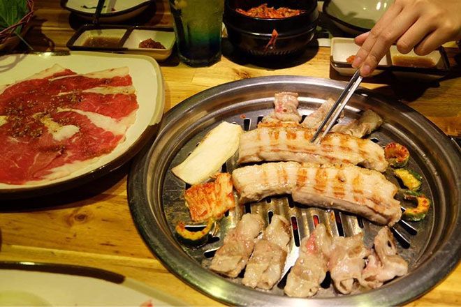 Đừng quên thịt ba rọi nướng, một lựa chọn tuyệt vời khác cho thực khách. Thịt được ướp với 2 loại gia vị là muối ớt và riềng mẻ, mang đến hương vị đặc trưng của hai miền Bắc Nam.