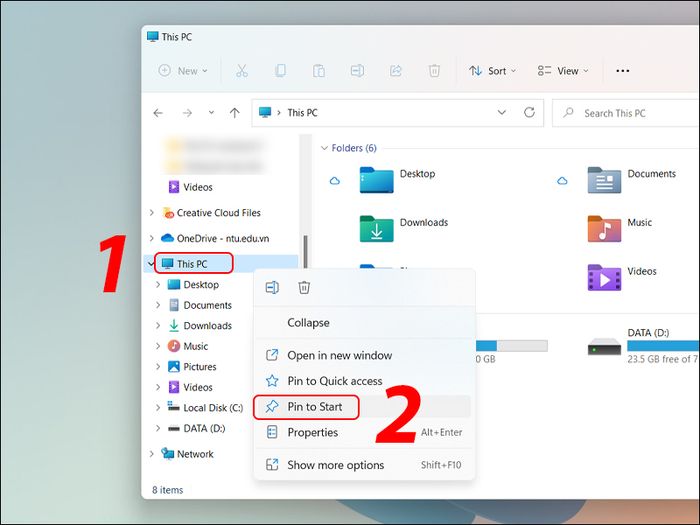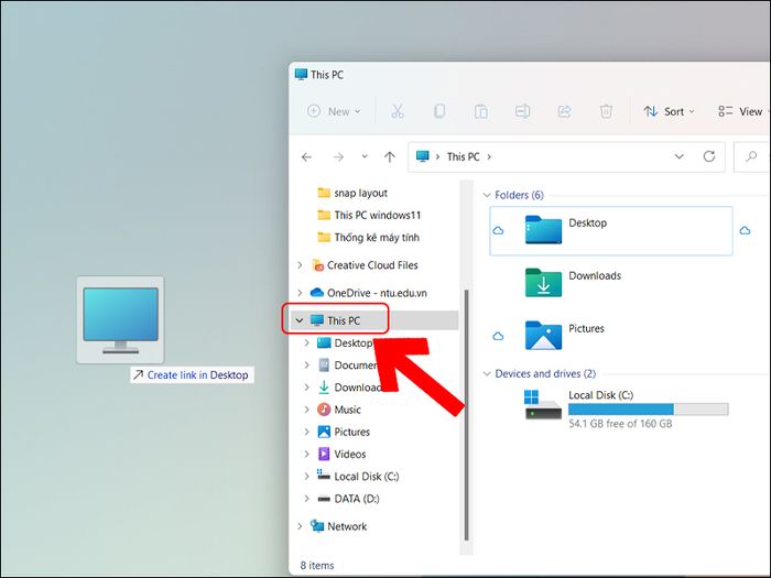 Cách 1: Hiển thị biểu tượng This PC trên Desktop Windows 11