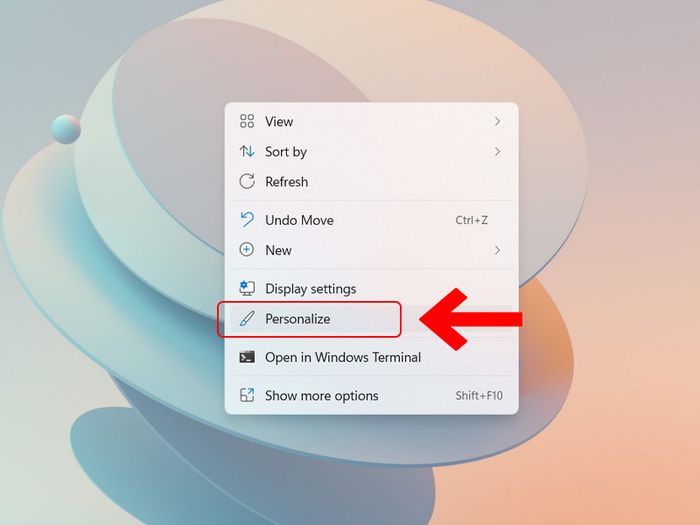 Bước 1: Click chuột phải vào khu vực trống trên màn hình desktop > Chọn Personalize.