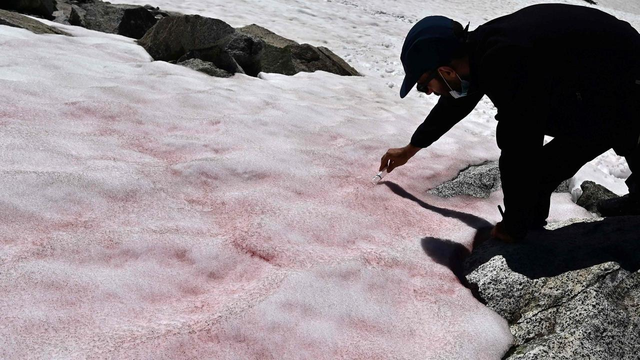 Trên dốc nắng, họ tìm thấy Chlamydomonas nivalis - một loại tảo có thể làm tăng tốc độ tan chảy của tuyết.