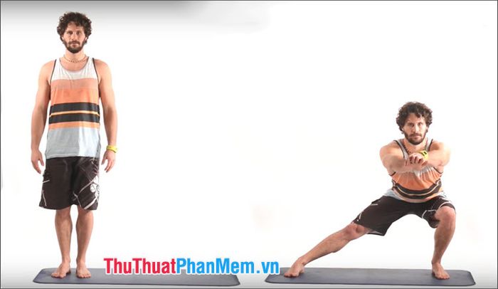 Lateral Lunge là động tác lắc chuyển hông sang hai bên khá dễ thực hiện. Đồng thời, động tác này giúp giảm các triệu chứng đau lưng thường gặp do ngồi lâu một cách hiệu quả. Bạn có thể thử thách bản thân bằng cách sử dụng tạ đòn hoặc tạ tay.