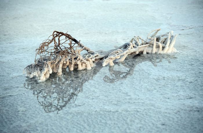 25. Cảnh đẹp huyền bí khi cành cây được phủ muối trên cánh đồng muối của Vùng trũng Danakil vào ngày 22 tháng 1 năm 2017.